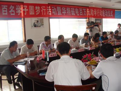 6月26日上午,“百名學子圓夢行”活動暨“華特磁電百萬元助學行動”啟動儀式在我公司二樓會議室舉行。中共臨朐縣委常委、宣傳部長趙永娟出席并作了重要講話。公司董事長兼總經理王兆連在會上介紹了華特磁電百萬元助學行動開展情況。臨朐縣工商聯主席史炳忠介紹了民營企業家百名學子圓夢行活動情況。