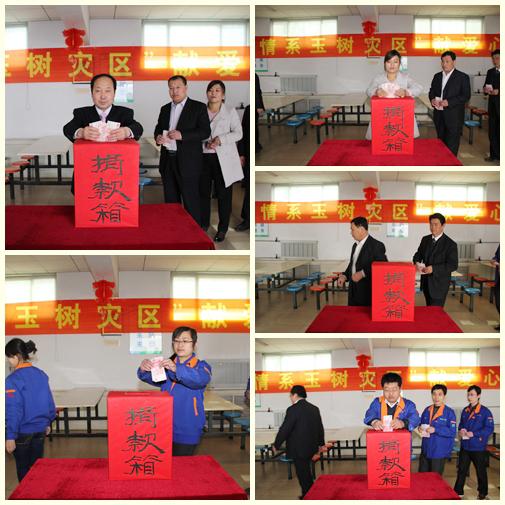 上午,公司在餐廳舉行了向青海玉樹地震災區捐款活動,公司董事長兼總經理王兆連個人捐款10000元,廣大員工紛紛解囊,踴躍捐款,共捐善款47010元。充分體現出華特公司員工“情系玉樹,奉獻愛心”的高尚品德。 、