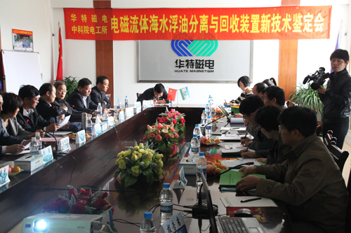 受山東省科技廳委托, 2012年10月28日濰坊市科技局在公司現場主持召開了 “電磁流體海水浮油分離與回收裝置”新技術鑒定會。該技術系山東省科學技術發展計劃項目,由公司與中國科學院電工研究所等單位合作,歷時一年多開發完成。來自中科院海洋所、中海石油環保服務有限公司、中國石油大學、交通運輸部水運科學研究院、華北電力大學(北京)、中國船舶重工集團第七0二研究所、中國海事局煙臺溢油應急技術中心等單位的7位專家參加了鑒定。