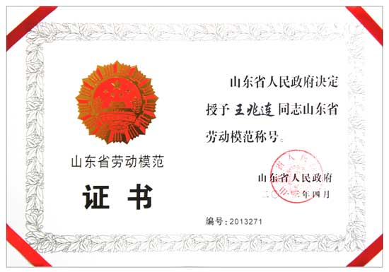 熱烈祝賀公司董事長(zhǎng)兼總經(jīng)理王兆連被山東省人民政府授予山東省勞動(dòng)模范