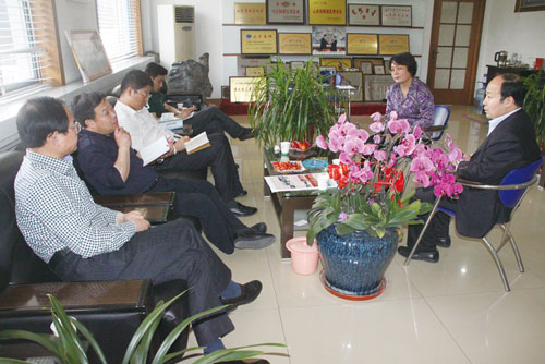5月15日,大眾日?qǐng)?bào)社采訪團(tuán)在臨朐縣經(jīng)信局局長(zhǎng)梅傳杰,縣委宣傳部副部長(zhǎng)魏淑娟等領(lǐng)導(dǎo)陪同下來(lái)公司采訪。公司董事長(zhǎng)兼總裁王兆連接受采訪。
