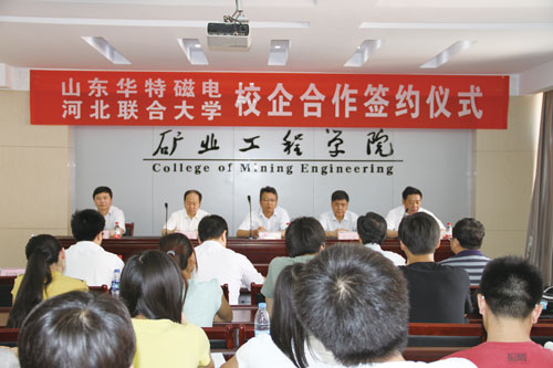 24日上午,在礦業(yè)工程學(xué)院舉行了校企戰(zhàn)略合作框架協(xié)議簽約儀式。河北聯(lián)合大學(xué)黨委常委李昌存、河北聯(lián)合大學(xué)礦業(yè)工程學(xué)院黨委書記陳志敏、院長甘德清、副院長張云鵬、副院長李富平以及礦業(yè)工程學(xué)院教授、博士生導(dǎo)師張錦瑞、趙禮兵等出席簽約儀式,甘德清院長主持,李昌存致歡迎辭,王董與李院長代表雙方簽署框架協(xié)議,達(dá)成戰(zhàn)略合作伙伴共識,開創(chuàng)華特校企戰(zhàn)略合作的先河。為了適應(yīng)我國礦業(yè)資源開發(fā)需要,本著“優(yōu)勢互補(bǔ)、互聯(lián)共贏、長期合作、共同發(fā)展”的基本原則,雙方?jīng)Q定在人才培養(yǎng)、科學(xué)研究與技術(shù)開發(fā)等方面開展全面合作,充分利用雙方在資源、人才、教育、技術(shù)和管理方面的優(yōu)勢,培養(yǎng)和建設(shè)高水平人才隊伍,實(shí)現(xiàn)在新形勢下共同發(fā)展的目標(biāo),探索“產(chǎn)學(xué)研”合作新模式。