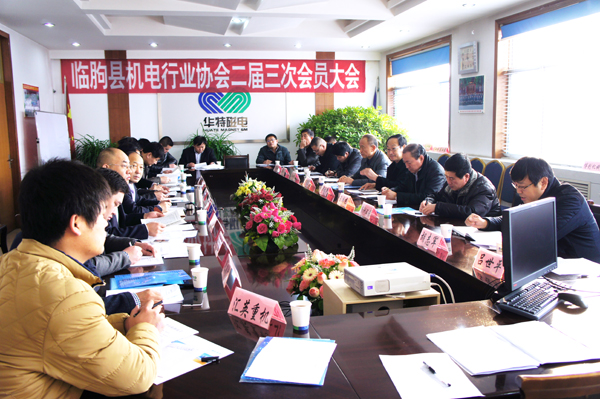 臨朐縣機電行業協會二屆三次會員大會于2015年1月24日在山東華特磁電科技股份有限公司會議室召開。臨朐縣經信局局長梅傳杰、副局長周德運、經濟運行總調度長李玉凱參加大會。大會首先由縣經信局局長梅傳杰,協會會長王兆連,德宇律師事務所所長胡志軍等為“臨朐縣機電行業協會法律服務中心”揭牌,隨后,由胡志軍律師結合相關案例講解了企業法律風險規避控制。臨朐縣榮豐源小額貸款有限公司總經理呂世平介紹貸款業務咨詢。縣機電行業協會會長王兆連分別作《縣機電協會年會工作報告》和《裝備制造業預測未來走勢分析報告》。會上,由山東恒遠利廢技術發展有限公司董事長、協會副會長馬連濤和濰坊三諾機電設備有限公司董事長王尚杰結合企業發展實際,在經濟下行條件下,遇到的新情況新問題作了交流發言??h經信局局長梅傳杰就全縣工業發展形勢和未來新常態和新思維發展前景在會上做了重要講話。
