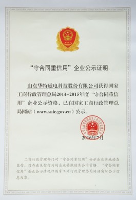 本次我公司獲得國家級“守合同重信用”企業(yè)公示,進一步增強了華特公司的知名度,提高了華特公司的軟實力。