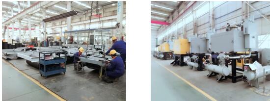組裝車間員工設(shè)備組裝現(xiàn)場(chǎng)以及部分組裝完成待發(fā)貨的整機(jī)。