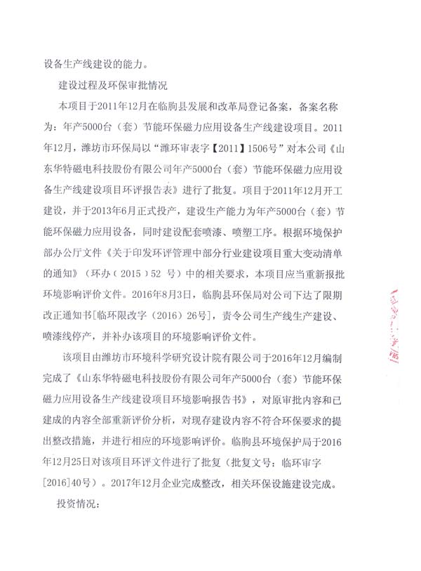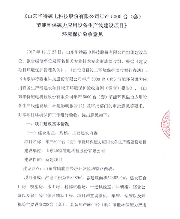 根據(jù)《建設(shè)項目竣工環(huán)境保護驗收暫行辦法》的有關(guān)規(guī)定,我公司于2017年12月27日組織年產(chǎn)5000臺(套)節(jié)能環(huán)保磁力應(yīng)用設(shè)備生產(chǎn)線建設(shè)項目環(huán)保驗收。現(xiàn)將驗收意見予以公示,公示期為2017年12月29日-2018年1月28日。