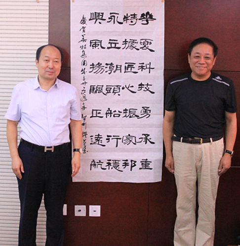 祝帥博士代表書畫家們發表了熱情洋溢的講話。他表示,通過實地參觀考察華特公司,了解企業高科技學術成果,對于華特精神有四點深刻體會:一是堅持,即長期堅韌不拔的堅持精神,支持華特走過了二十五風雨歷程,不斷創造新的輝煌。二是國際,即立足臨朐,放眼世界,在國際市場上依靠科技創新與國際合作做強做大企業。三是創新,整個企業充滿了創新氣氛,高科技、新產品的推陳出新成為華特成長發展的主旋律。四是責任,華特在公益慈善事業、捐助貧困大學生、抗洪救災等方面投入大量的人力物力,令人感動。最后,他為華特贈送了經典詞語:華威馳遠;特立先行。祝帥老師的講話引起了陣陣掌聲。