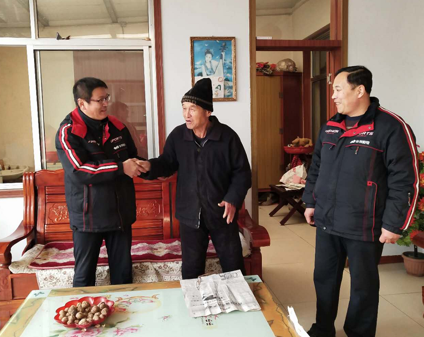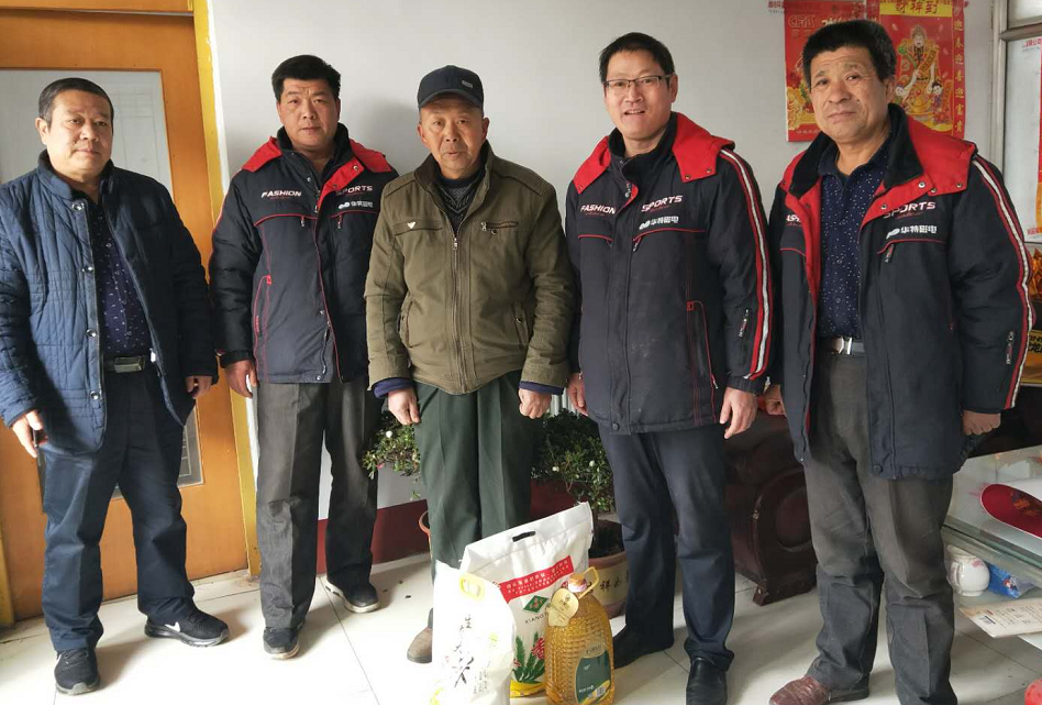 在老莊子村,慰問組在村兩委成員的陪同下,走訪慰問了因病、因傷等情況致貧的困難戶。慰問組每到一戶都主動詢問他們的家庭情況、經濟來源、生活條件以及他們生活中的困難,為他們送去了油、米、面等生活用品,同時傳達了公司董事長王兆連和全體員工的關懷與祝福,鼓勵他們歡歡樂樂過春節,健健康康迎新年。告訴他們黨和政府不會忘記他們,遇到困難及時聯系,村兩委和華特公司是他們的堅強后盾。