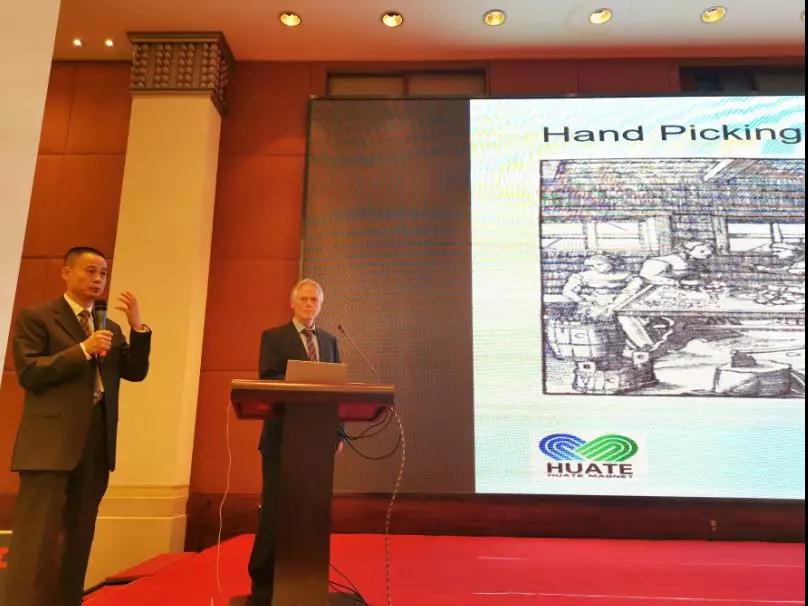 磁電聯盟理事長單位山東華特磁電科技股份有限公司外聘專家、技術合作伙伴、國際智能傳感選礦學術委員會主席、德國亞琛工業大學選礦技術研究所所長海爾曼?沃特魯巴教授將作為會議特邀嘉賓在會上作了關于“智能傳感分選技術在非金屬礦行業的應用”的學術交流報告。以滑石、螢石和重晶石等礦石為例,介紹先進X光、近紅外、激光等光電傳感技術來進行各類礦石預選。