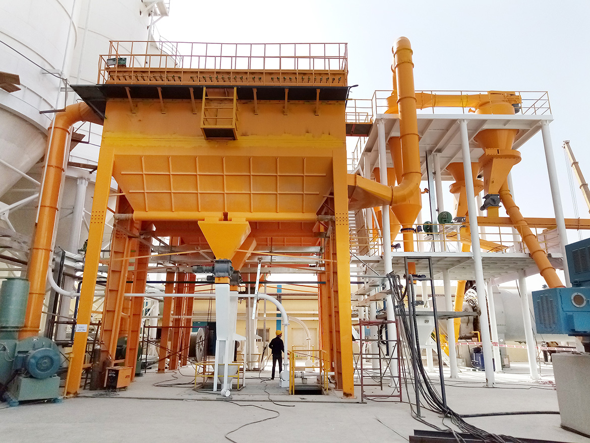 整套分級裝置由氣流分級機(jī)、旋風(fēng)收集器、脈沖除塵器、高壓引風(fēng)機(jī)、電控柜等組成。氣流分級機(jī)是帶有二次進(jìn)風(fēng)及立式安裝的大葉輪轉(zhuǎn)子的強(qiáng)制型分級機(jī)。工作時物料在引風(fēng)機(jī)引力的作用下由下筒身進(jìn)入,外界一次風(fēng)與物料充分混合,使粒子得以充分分散,并上升至分級區(qū),由于分級葉輪轉(zhuǎn)子的高速旋轉(zhuǎn),粒子即受到分級葉輪旋轉(zhuǎn)產(chǎn)生的離心力,又受到引風(fēng)機(jī)引力產(chǎn)生的向心力,當(dāng)粒子受到的離心力大于向心力,分級徑以上的粗粒子被甩到筒體內(nèi)壁失速沿壁面下滑,外界二次風(fēng)通過均勻分布在錐體上的進(jìn)風(fēng)口進(jìn)入,對粗粒子進(jìn)行產(chǎn)生風(fēng)篩作用將混雜或粘附于粗料中的細(xì)粉分離干凈,分離后的粗料由卸料裝置收集排出分級機(jī),分級徑以下的細(xì)粉隨氣固二相流進(jìn)入旋風(fēng)收集器、脈沖除塵器收集下來,凈化后的氣體由引風(fēng)機(jī)排出。